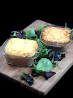 Etaler au fond du plat à gratin. Préparer la purée. L'étaler au dessus de la viande. Saupoudrer de fromage râpé et faire gratiner.